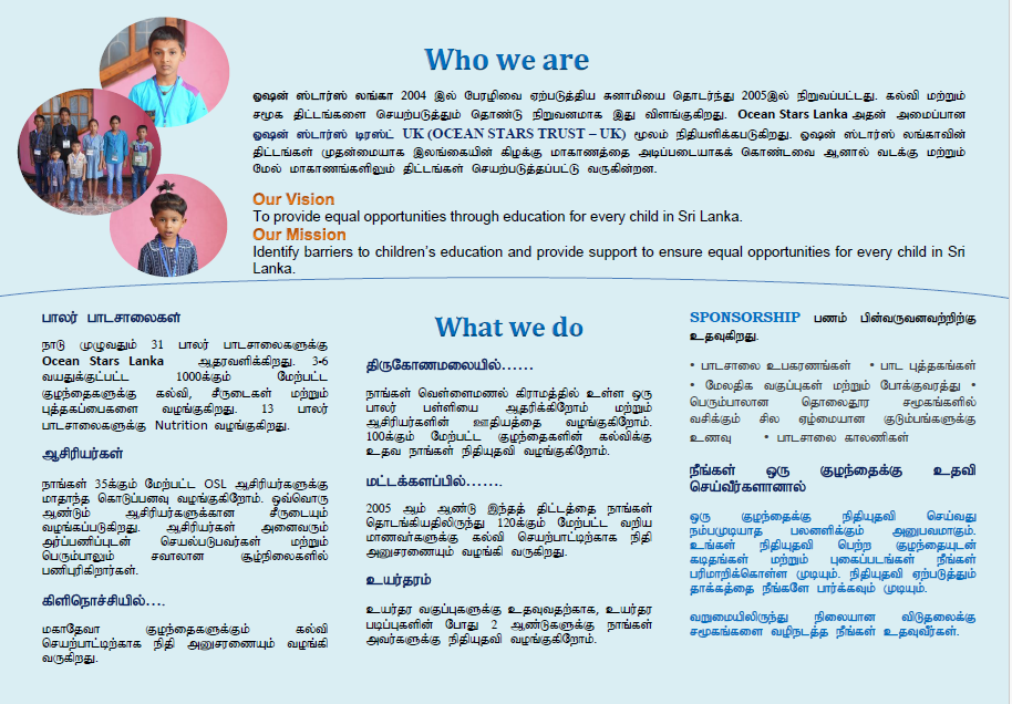 We are happy to share the Ocean Stars Lanka leaflet, highlighting our mission, projects, and the impact we continue to make across Sri Lanka.
