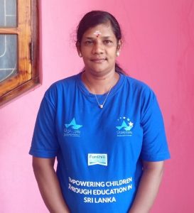 Hi, I’m Luxmy. I work as the Office Manager at Ocean Stars Lanka. My responsibilities include keeping the office clean and well-organized, welcoming and caring for our sponsored children, watering and maintaining the office plants, and monitoring and recording information about the sponsored children. I also support the team by preparing tea for the staff. I enjoy my work very much and find great fulfilment in what I do.